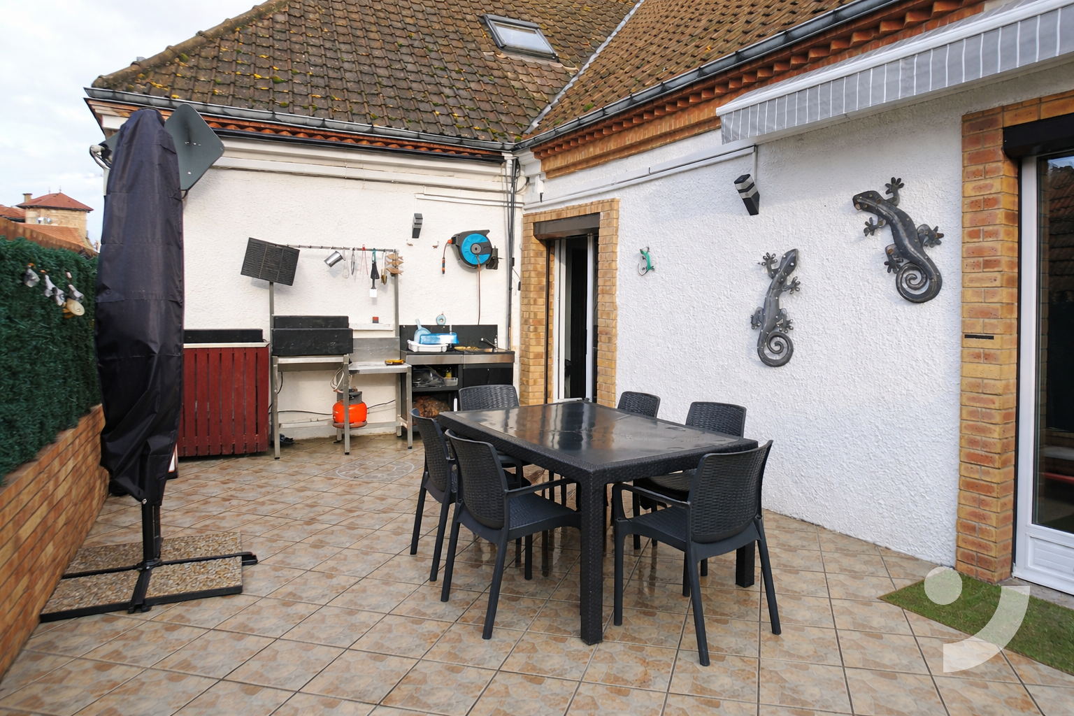 Un garage complète l’ensemble et apporte un confort supplémentaire en matière de stationnement ou de stockage.